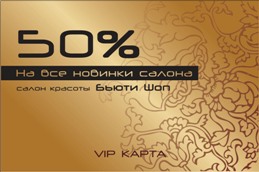 Стоимость VIP-карточки с 50%-й скидкой на новинки салона Бьюти Шоп – 785,00 грн.
