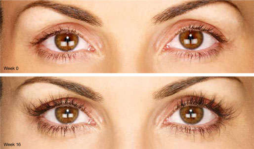 ? значительно более длинные, густые и темные ресницы уже через 8 недель терапии